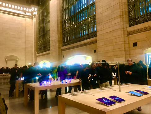 曼哈頓中城的中央車站,是紐約最繁忙的交通樞杻 - 至今有 140 年的車站建築中,在 2011年12月9日進駐了蘋果零售大店 (Apple Retail Store - 截至2021年3月,蘋果已經在全世界25個國家和地區開設511家直營店。) 。